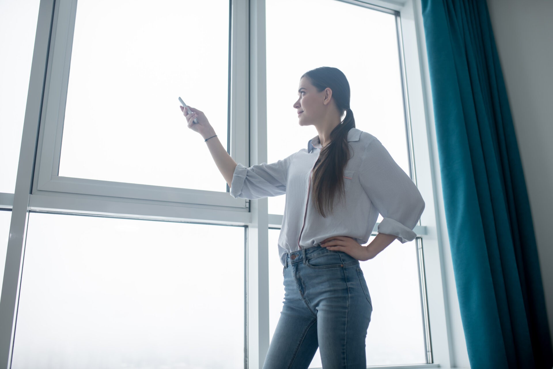 This type of automatic window blinds and shades are controlled via a smartphone app or a home hub. Many of these smart tech-operated blinds are compatible with Alexa and can also be controlled with your voice commands.