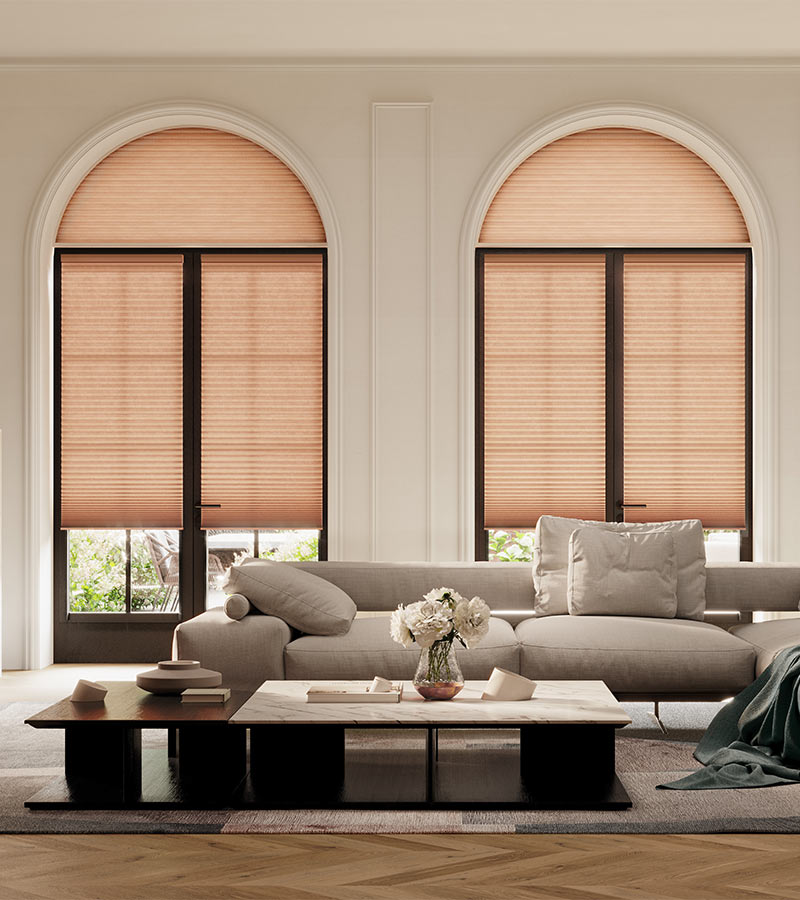 Custom shades for arched, angled, and non-standard windows that traditional blinds can’t accommodate.