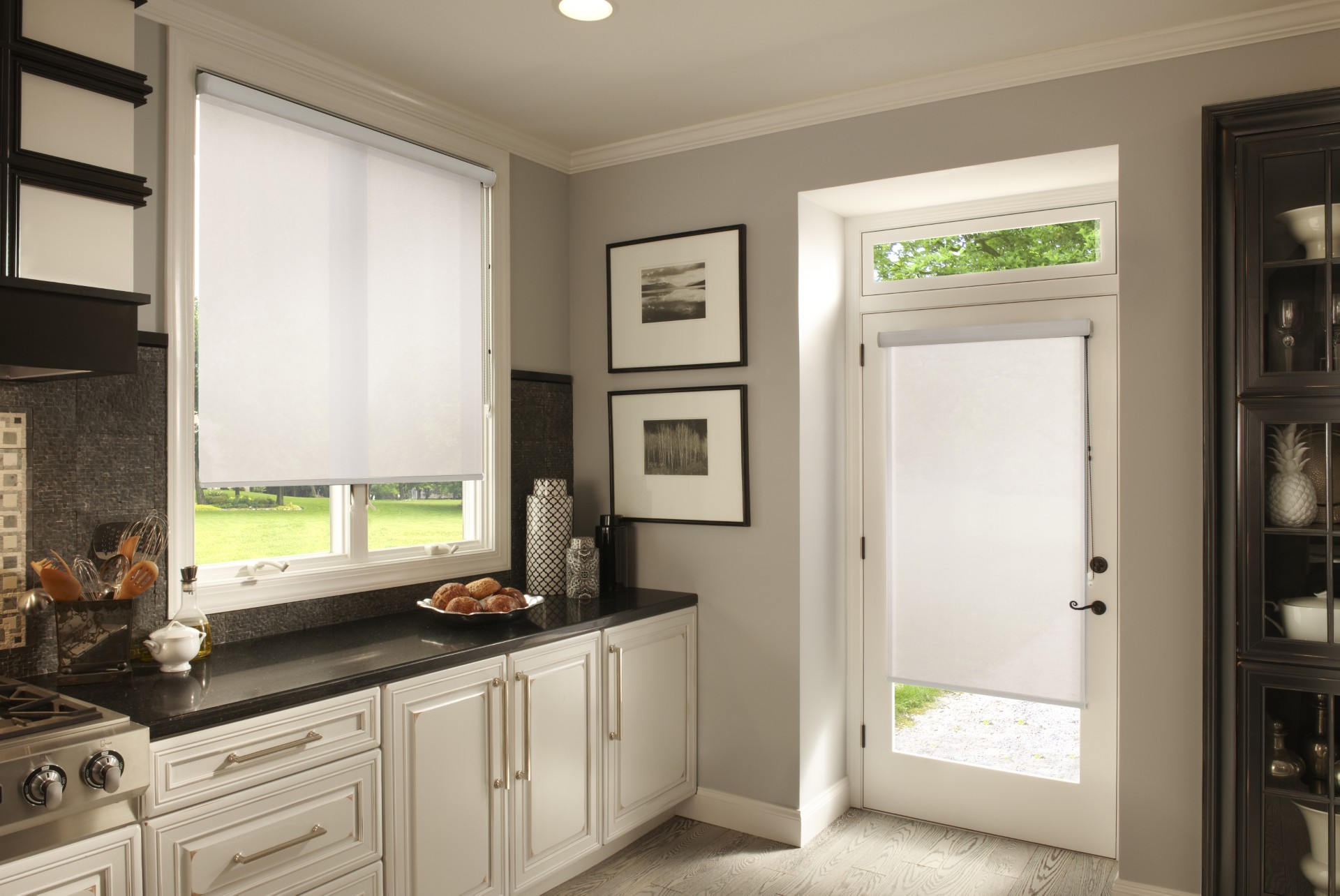 Outside Mount shades and blinds are installed above the window frame.